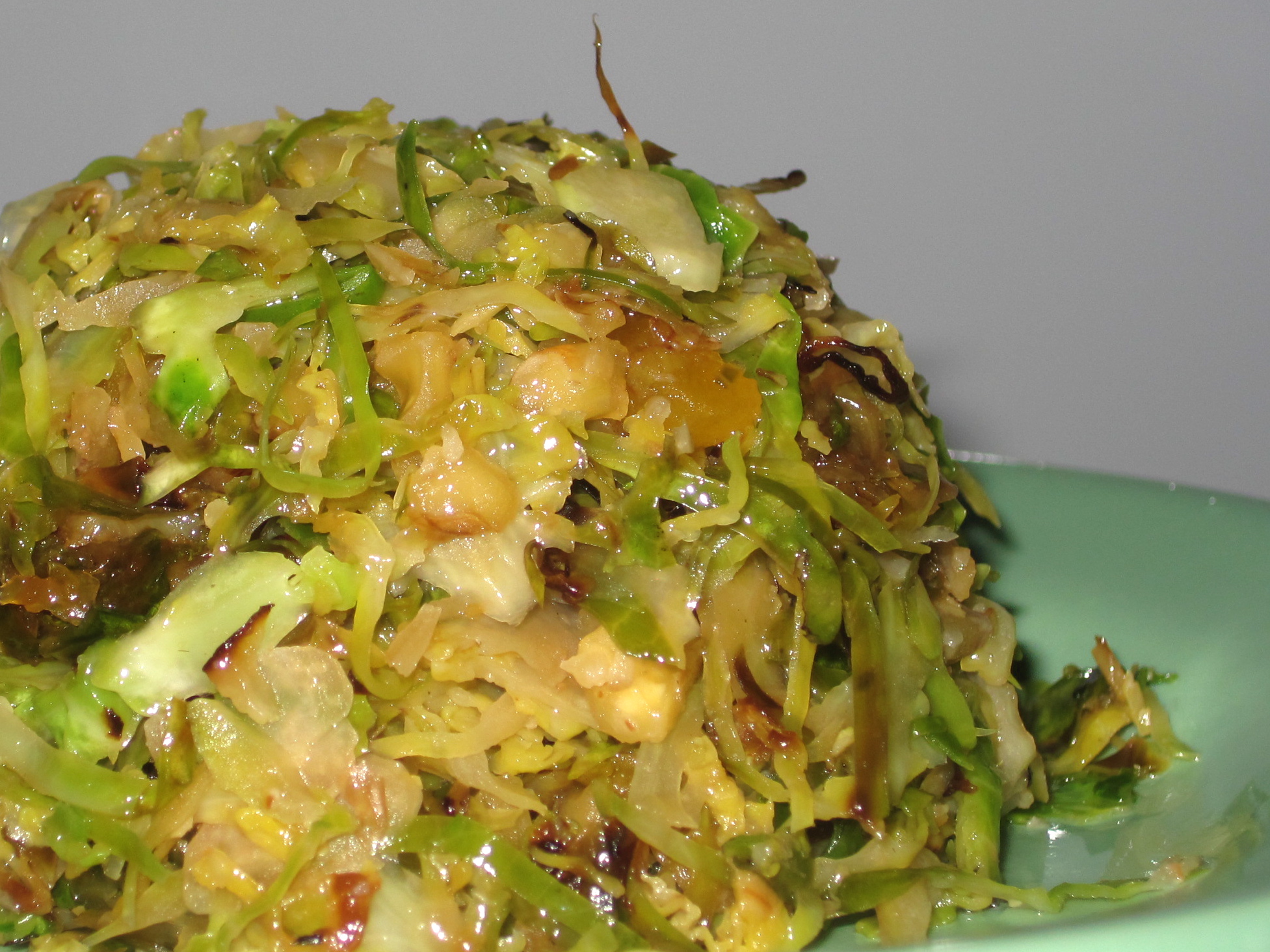 - Meanwhile, run the sprouts through your slicer / shredder, or shred by hand if necessary