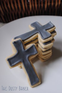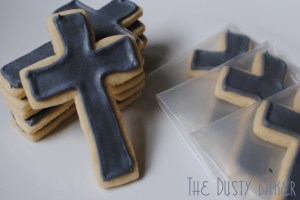 So obviously I had to spend one day in the kitchen cutting, baking, piping and flooding 75 cookies in the shape of crosses. I mean, what else does a gal do when she’s got an insane week?