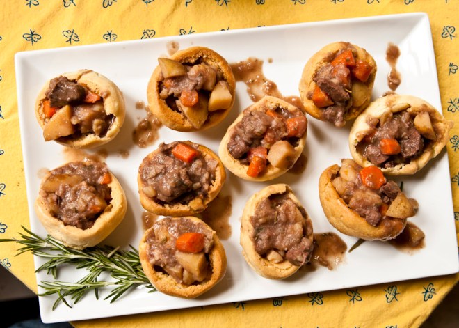 I’m a rustic cook, leaning towards the comfort foods of my Portuguese and Irish / Italian roots, all of which focus on simple flavor combinations and fresh ingredients.  Lamb is one of my favorite meats to stew when cut well, and as I missed my beloved St. Patrick’s Day (I was in Portugal working on a few pieces where the celebrations don’t really exist), I was ready to throw this together for my FoodBuzz Gluten-Free Puff Pastry Party.