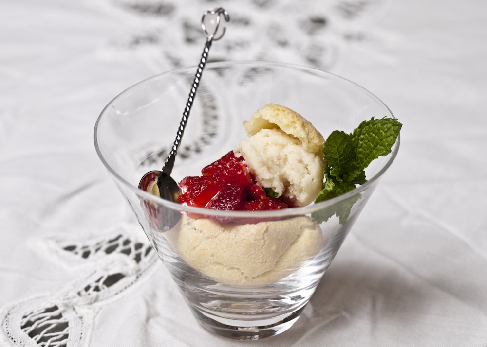 In dreaming about what sweets I could fill into gluten-free puff pastries other than the traditional cream for my FoodBuzz 24×24 party, the combo naturally came to mind. Why not do a mini take on a strawberry shortcake to compliment my cool and minty Mini Banana Splits?