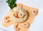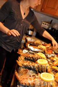 Notes: I realize squid ink spaghetti is not easily found on a grocery store shelf. I was lucky to stumble upon it and snatched it up, as I love the deep color. When I recreated this dish for myself I used a gluten-free pasta from DeBoles I had around, and it was tasty. I would suggest, however, using as fresh a pasta as you can (find dried ones in specialty markets that take 3-4 minutes to cook) as they retain a bit of texture while weighted foods are placed upon them.