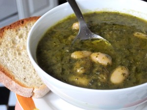 Now this picture does NOT justify the deliciousness of this soup. It’s adapted from the recipe Lemon and Lima Bean Soup I got from Bloodroot restaurant in Bridgeport, Connecticut – a vegetarian joint that’s been around since the 70s and serves up some of the most scrumptious, natural food I’ve ever had in a wonderfully women-centric environment. I tend to use a bit more liquid and seasonings and a dash of something more to get the flavor I want, but their original recipe and cookbooks are highly recommended.