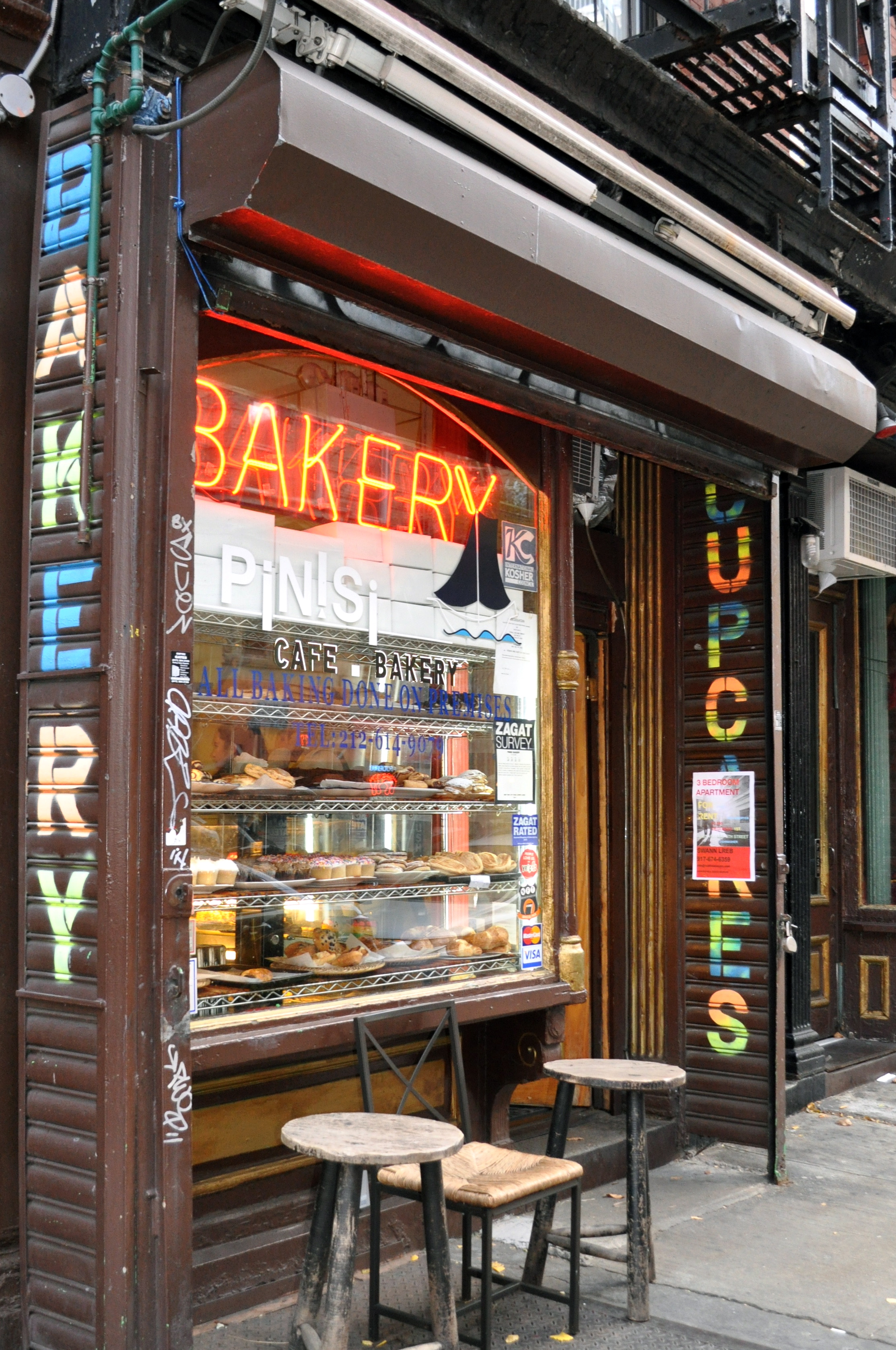 Tucked away on 4th street between 1st and 2nd avenues, with a busily-painted window and flanked by two grey, non-descript other buildings, this isn’t a pastel-pink, cupcake-laden joint like TuLu’s or Babycakes.  This is the grandmother, the abuela or avo or however you say grandmother in Italian, of bakeries.