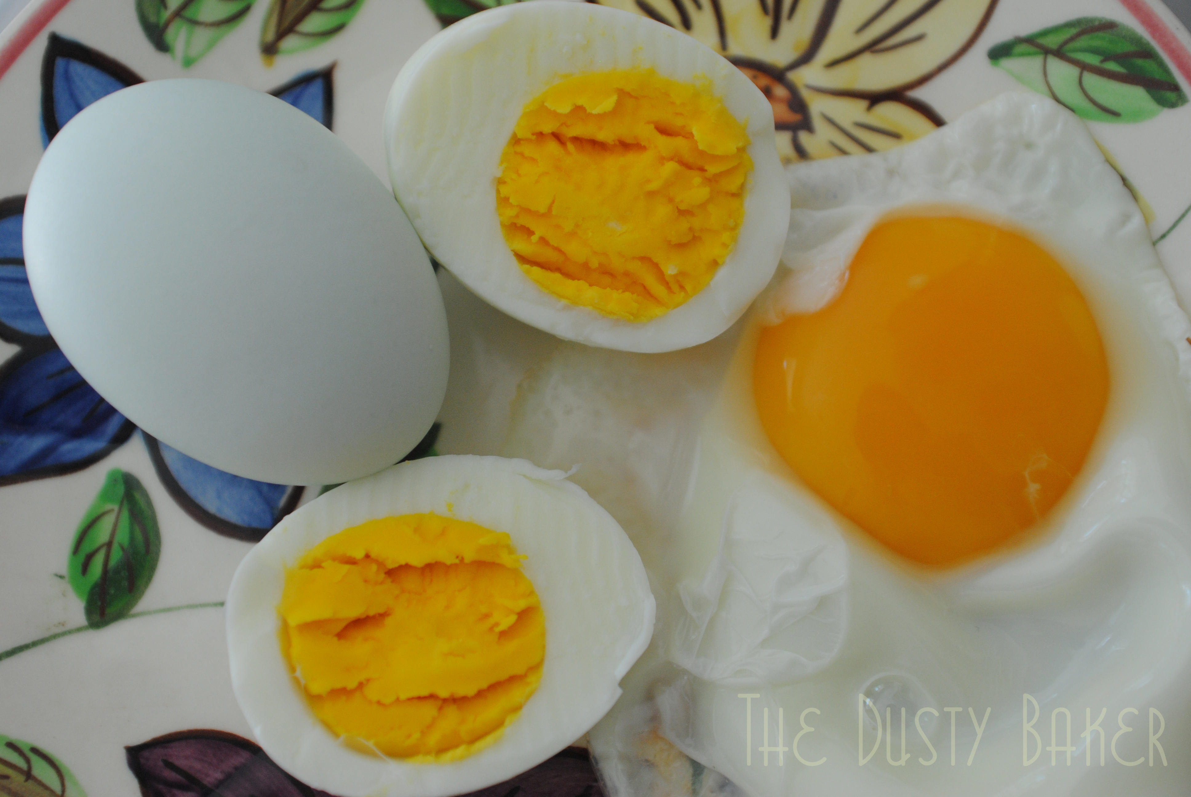 To fully experience the allegedly deep and rich yolks, I cooked one over low heat in an ungreased skillet and then boiled the rest, making sure to only let them simmer and sit in hot water until just cooked, then ran them under cold water to stop the process and help the egg pull from the shell.