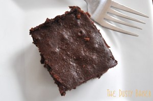 The result? Incredibly moist, fudgy, dark cocoa brownies. Just as I want them. Easy to slice, packed with chocolate and with a slight zing from the beer. Incredibly easy to make, and from start to finish we had the brownies in about a half an hour.